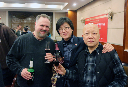 脱下礼服的指挥大师Jason Altieri,小朗主人Theresa Sun,爱乐音乐会‘主教’,朗翡洛老友段为亮先生,用Bleasdale Sparking Shiraz庆祝1314的友谊!